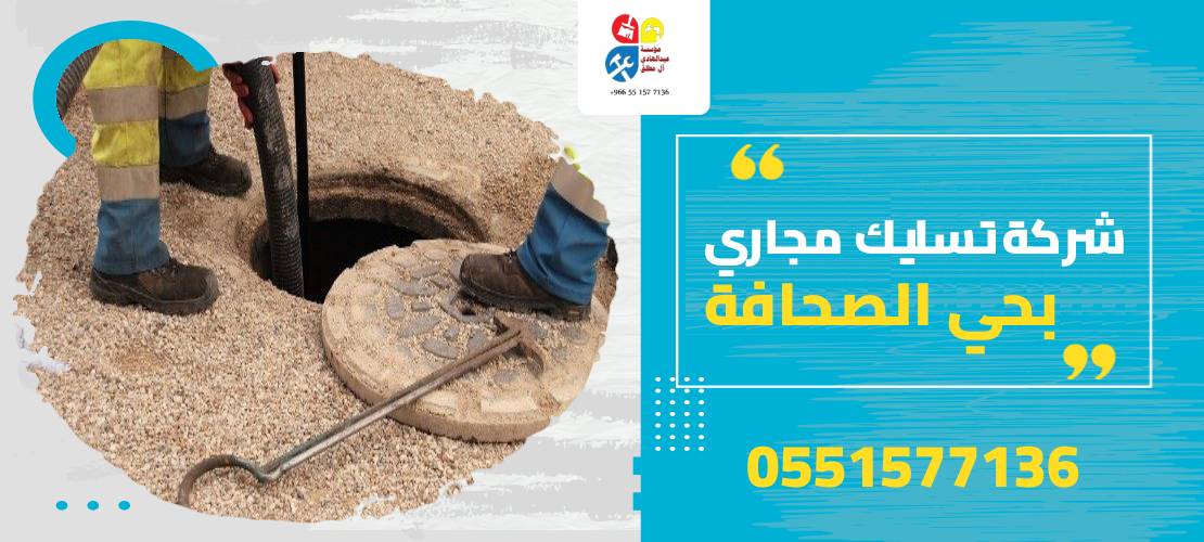 مؤسسة آل مطلق لخدمات شفط المجاري والصرف الصحي تقدم خدمات تسليك مجاري بحي الصحافة وهي من اولي الخدمات في حي الصحافة لحصول مؤسستنا علي الشهادة ورخصة عمل من بلدية الصرف الصحي وشفط المجاري في الرياض، كما أن يوجد لدينا في مؤسسة آل مطلق فريق العمل المتخصص في شفط المجاري والبيارات والبالوعات. شركة تسليك مجاري بحي الصحافة تعمل على القيام باستخدام أفضل مواد إزالة الدهوان والترثبات على الإطلاق بداخل مواسير المجاري.