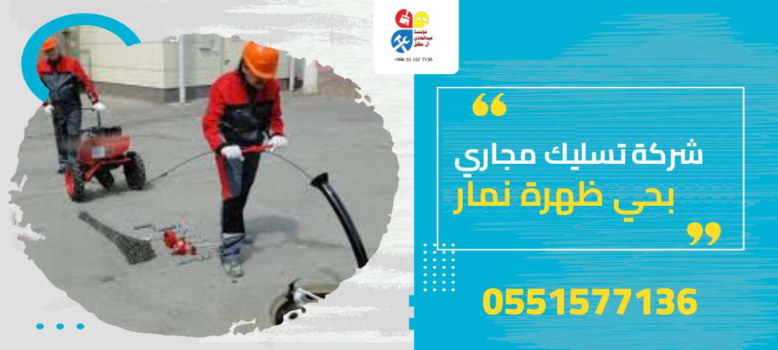 تقدم لكم مؤسسة آل مطلق شركة تسليك مجاري بحي ظهرة نمار، خدمة تسليك وتنظيف كافة أماكن الصرف الصحي وذلك مثل البيارات ومثل غرف التفتيش ومثل المواسير وذلك يتم من خلال المجموعة الكبيرة من الأجهزة المتطورة الحديثة ونعلم جيدا عزيزي العميل أن مشكلة الانسداد في مواسير الصرف الصحي تسبب لكم العديد من المشاكل والذي يكون منها الانتشار للحشرات والانتشار للدهون والقاذورات والانتشار للرائحة السيئة التي ينفر منها الجميع ولكن لا مشكلة على الإطلاق بأذن الله مع مؤسسة آل مطلق فإنها أفضل شركة تسليك مجاري بحي ظهرة نمار على الإطلاق حيث نقوم في مؤسسة آل مطلق بعملية التنظيف لجميع أنواع المشاكل التي تعانون منها اعزائنا العملاء الكرام في الصرف الصحي مع المجموعة الكبيرة من الفنيين المدربين على أعلى مستوي ممكن في التعامل مع جميع أنواع الصرف الصحي.