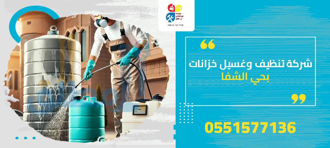 تحرص شركة تنظيف وغسيل خزانات بحي الشفا آل مطلق على توفير الأمان وتوفير الراحة لجميع العملاء حيث تقوم بتقديم كافة خدماتها بأرخص الأسعار الممكنة والتي تناسب جميع العملاء بحي الشفا، ولذلك تواصل بمؤسستنا عزيزي العميل وانت مطمئن وتأكد بأنك سوف تحصل على الخدمات المتميزة وذلك بشهادة العملاء نحن من أوائل الشركات في هذا لمجال، تعد مؤسسة آل مطلق شركة تنظيف وغسيل خزانات بحي الشفا من الشركات الكبرى جدا في مجال تنظيف الخزانات والعملاء التي قامو بالاستعانة بمؤسستنا أكدوا أننا الأول في عمليات التنظيف وذلك نظرا لكفائتها و مصداقيتنا واماتنا فقم عزيزي العميل بالتواصل بنا وأنت متأكد وواثق تماما بانك تتمتع بالحصول على المياه النقية والمياه النظيفة ، والآن لا تتأخر عزيزي العميل بالتواصل على مؤسستنا آل مطلق وذلك لأنها الأولي على مستوى الرياض، حيث يتوفر لمؤسسة آل مطلق الفروع الكثيرة وجميع الفروع منتشرة بمنطقة الرياض وكافة انحائها حيث تغطي خدمات واعمال الشركة كافة أنحاء الشرق والغرب والجنوب والشمال في الرياض، قم بالتواصل معنا الآن فسوف نكون بإنتظار تلقى الإتصال وسوف نصلكم بدون أي تأخير بل على الوقت التي تحدده مؤسستنا آل مطلق ، والآن بأنتظارك 24 ساعة وعند الاتصال نرحب بك ونصلك أينما كنت في الرياض، شركة تنظيف وغسيل خزانات بحي الشفا تكون من الشركات الرخيصة جدا في تقديم الخدمات التي لا حصر لها والعملاء التي قامو بالتعاون مع شركة تنظيف وغسيل خزانات بحي الشفا اثبتو بأن شركتنا هي الأولى في هذا المجال ولها الخبرة والشهرة الكبيرة جدا فتواصل بها وأنت متأكد إنك سوف تتمتع بأفضل الخدمات الممكنة .