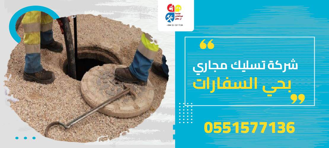 ان كنت من حي السفارات ، وتعانى من مشاكل الانسداد وتحاول القيام بمعالجة المشكلة وتكون غير قادر نهائيا وتقوم بالبحث الان عن الشركة المتميزة وأسعارها المنخفضة  لمساعدتك، فاطمئن عزيزي العميل تماما مع شركة تسليك مجاري بحي السفارات مؤسسة آل مطلق لا داعي للقلق نهائيا بعد الآن من الأسعار، وذلك  لان شركتنا آل مطلق متميزة عن باقي الشركات الاخري بالمجال واسعارنا مناسبة جدا للجميع وتكون مميزة ولذلك أصبحت مؤسسة آل مطلق المنافسة ومن تعامل معها يؤكد خبرتها ومهارتها، وتصار مؤسسة آل مطلق بتوفيرها للخصومات والعروض المتنوعة والكبيرة توفر على كافة العملاء الكرام التكاليف ولذلك يمكنك القيام بالتواصل فورا وتأكد تماما عزيزي العميل أن ليس مثيل لنا على الإطلاق.