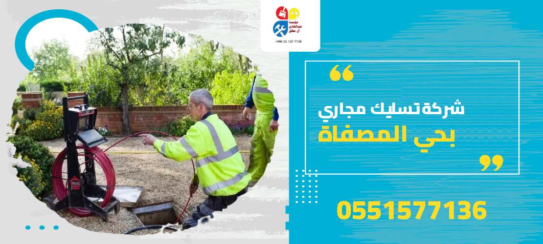 - تعد شركة تسليك مجاري بحي المصفاه هي أفضل شركة تتخصص في خدمات تسليك مختلف أنواع المجاري والبيارات، في الشركات والمؤسسات وكافة الأماكن السكنية من الفلل والشقق وخلافه.